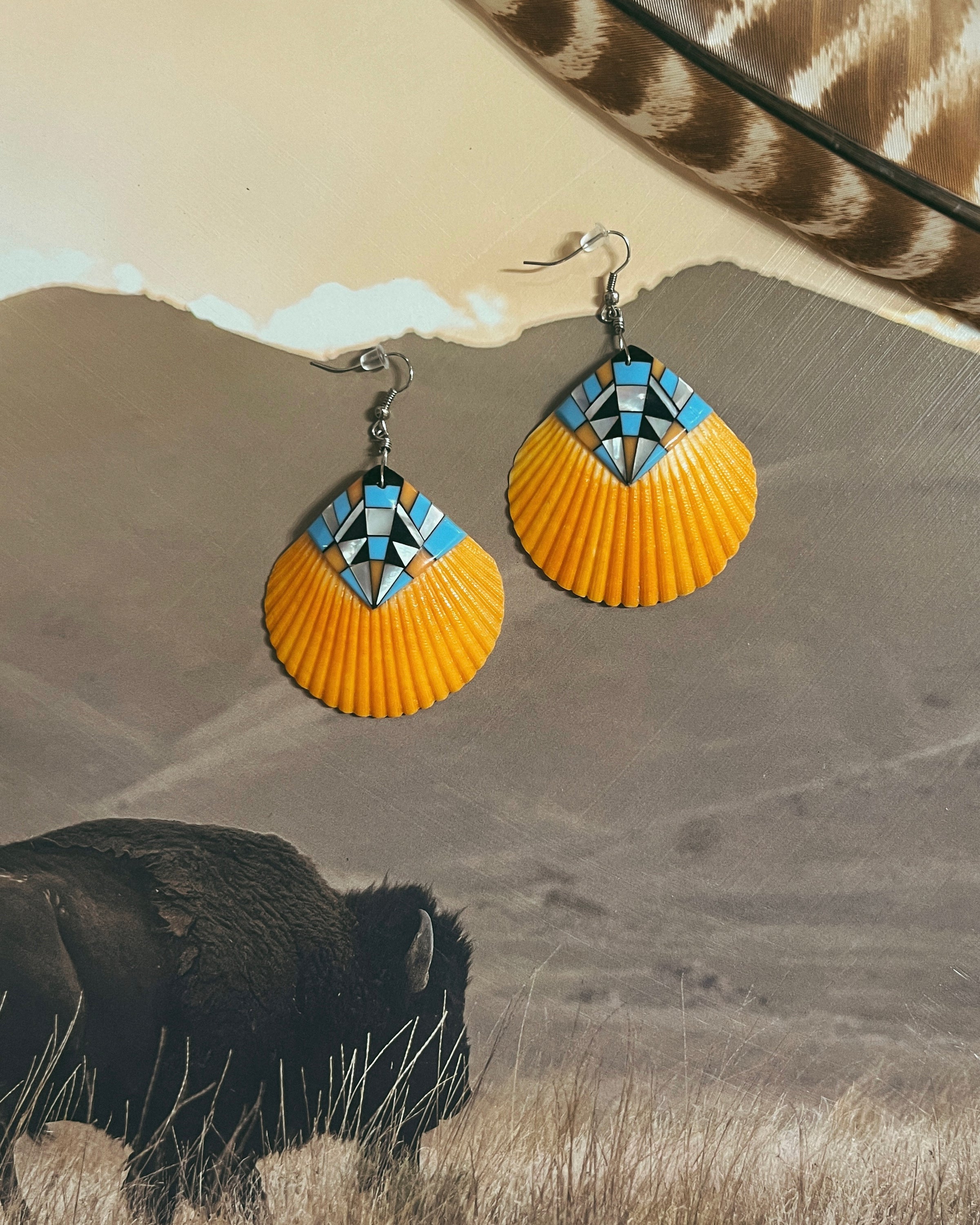 Bright. Bold. Unique. These sun-kissed beauties pair perfectly with all your orange spiny stacks. Crafted from natural orange shell and finished with geometric turquoise inlay.
