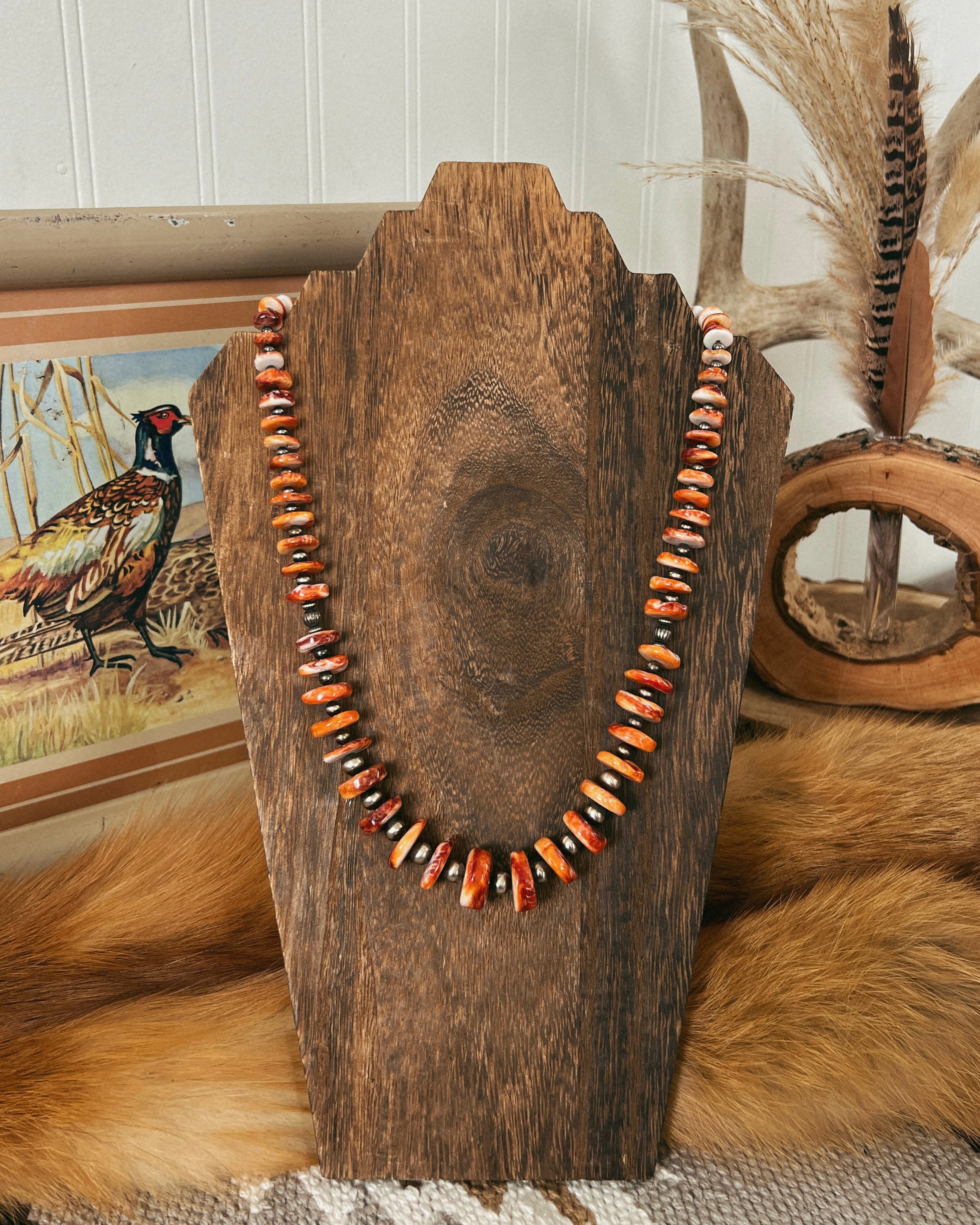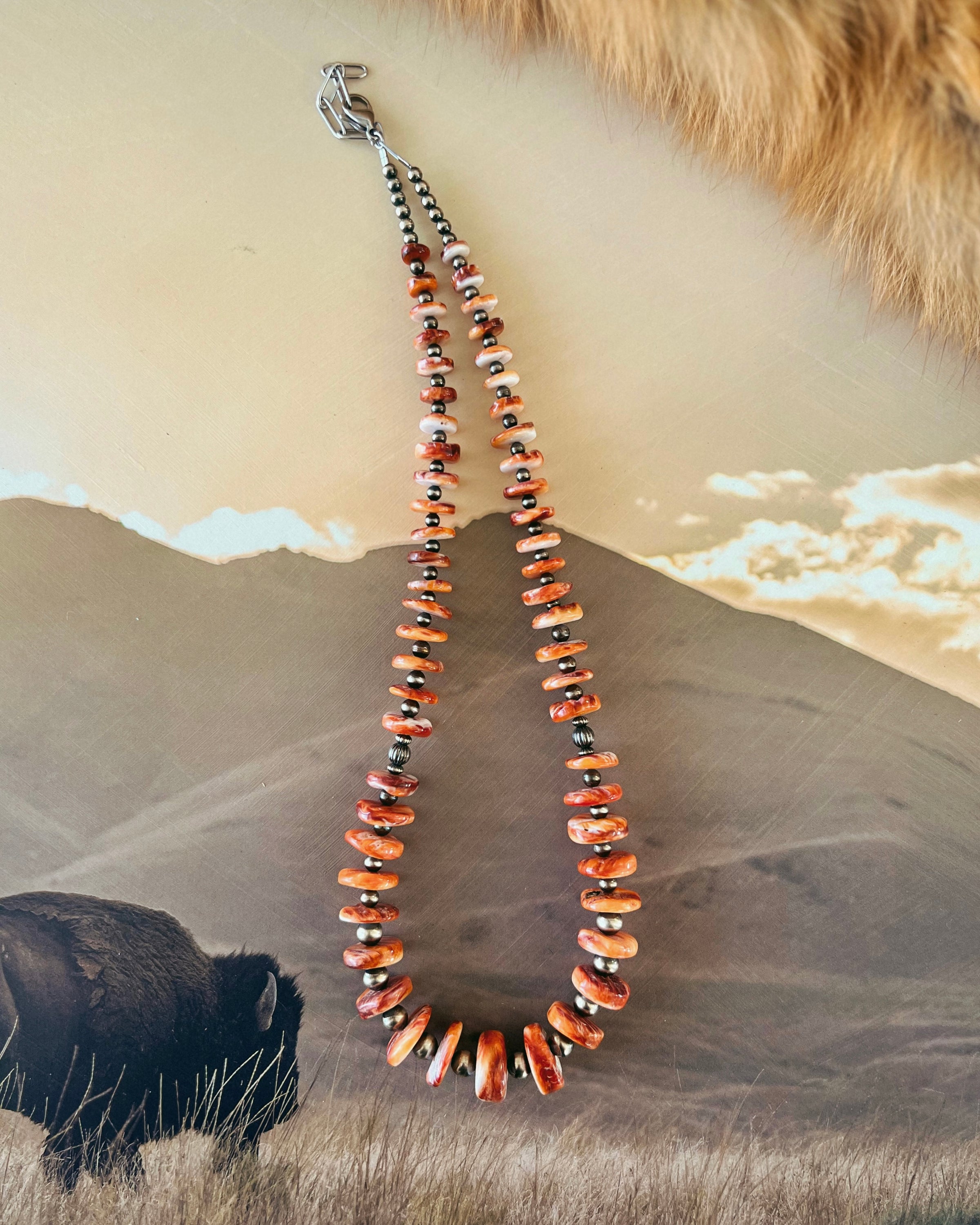 A classy and rich orange spiny oyster STATEMENT piece! Crafted from genuine orange spiny oyster shell beads and 7mm-4mm sterling silver pearls